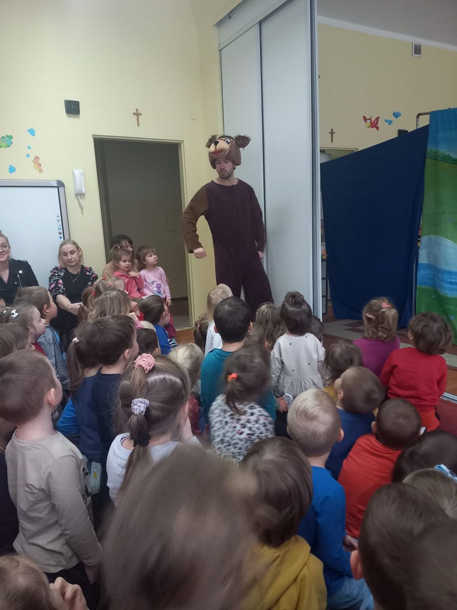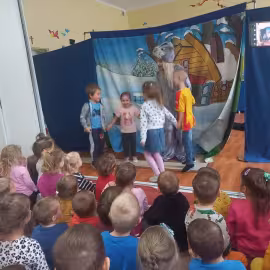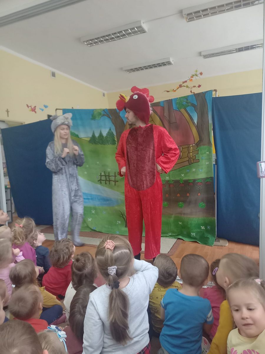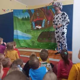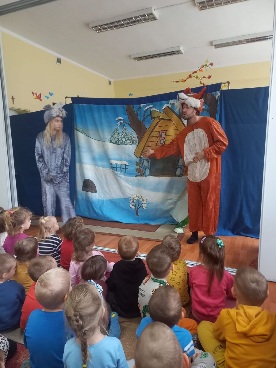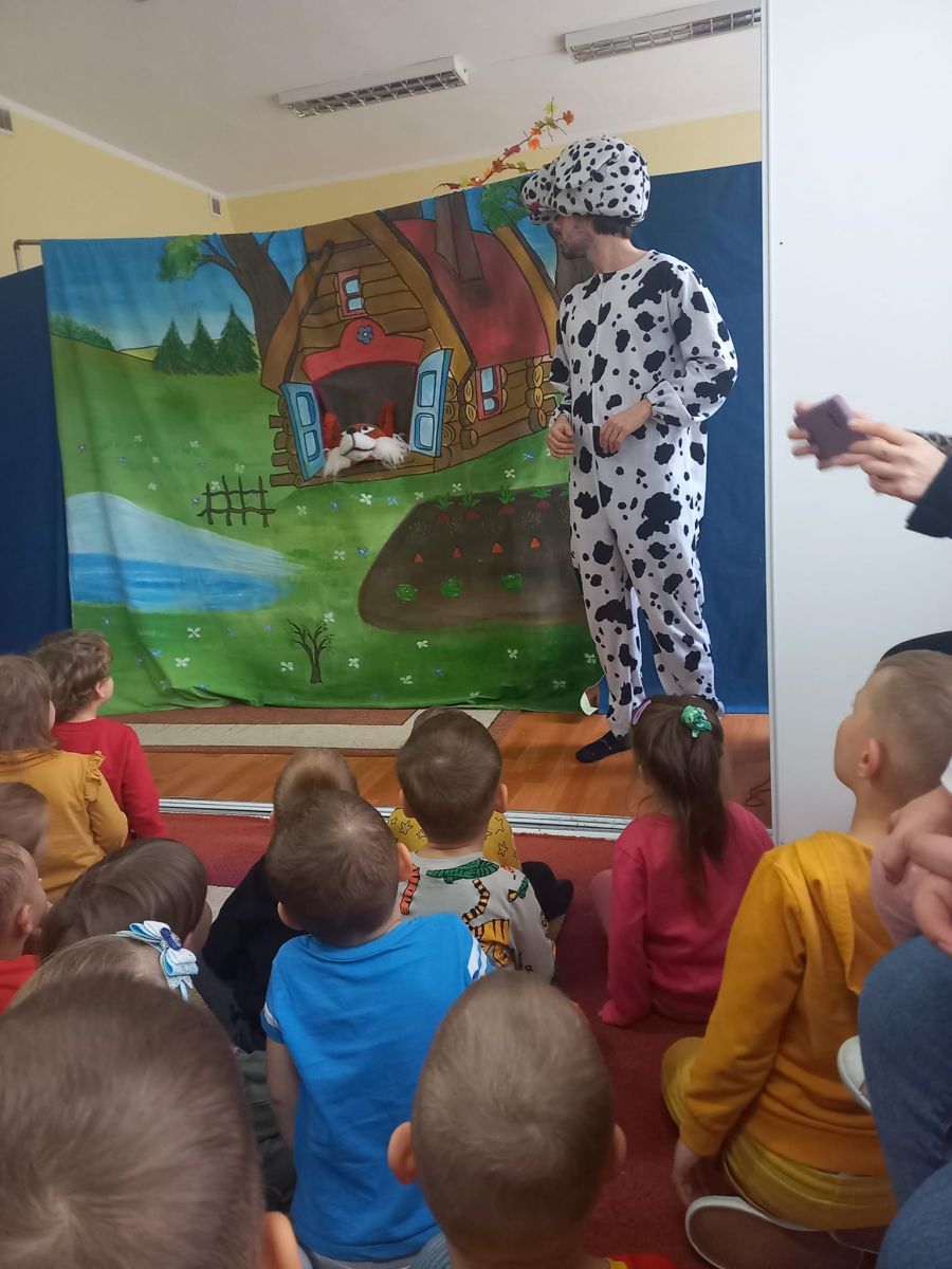 Opublikowano: 30.11.2023 22. listopada nasze przedszkolaki brały udział w interaktywnym spektaklu "Chatka Zajączka". Dzieci mogły aktywnie uczestniczyć w przedstawieniu, co było dla nich niezapomnianym przeżyciem.